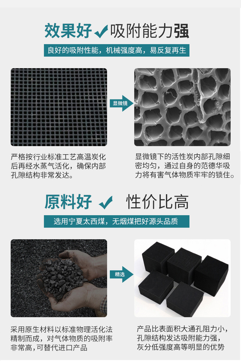 5、防水蜂窩活性炭還可廣泛應(yīng)用于農(nóng)業(yè)和工業(yè)生產(chǎn)的各個(gè)方面:如無(wú)堿除臭(精制脫臭)、乙烯脫鹽水(精制填料)、催化劑解凍(鈀、鉑、銠等)。),防水蜂窩活性炭可用于水凈化和污水處理。電力工業(yè)中電廠的水質(zhì)處理和保護(hù);化學(xué)催化劑及其在化學(xué)工業(yè)中的分解、氣體凈化、溶劑回收、脫色和油脂精煉;食品工業(yè)中飲料、酒、味精母液和食品的精制脫色;黃金工業(yè)中的黃金開(kāi)采。