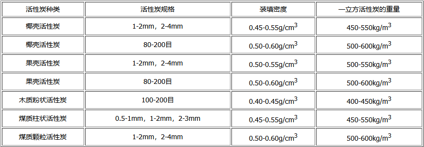 下表是竹之韻活性炭廠家根據(jù)我公司產(chǎn)品的實(shí)際情況,為大家總結(jié)幾種不同類型活性炭產(chǎn)品的裝填密度,以及不同規(guī)格、種類活性炭一立方的重量,希望對(duì)大家有所幫助。
