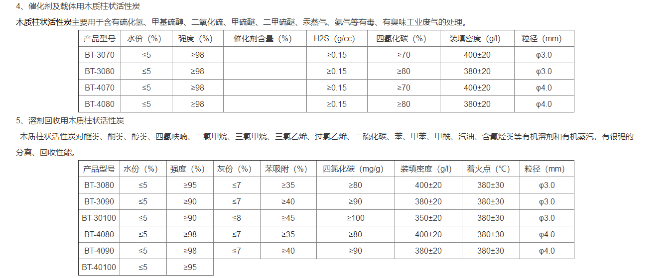 適用性:①、氣相吸附 ②、汽油回收 ③、有機(jī)溶劑回收 ④、雜質(zhì)和有害氣體的祛除。5、液相脫色除味(蔗糖脫色、木糖脫色、味精脫色、檸檬酸脫色及藥品、化工產(chǎn)品、食品添加劑的脫色、精制和去雜質(zhì)純化過濾)。