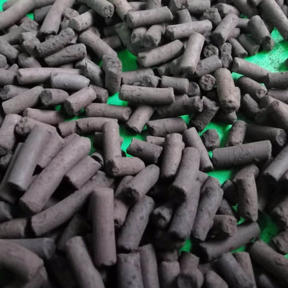 (2)混捏成型工序 混捏成型工序指對于柱狀活性炭生產(chǎn)而言。捏合即是將合格煤粉與定量黏合劑及添加劑在一定溫度下充分?jǐn)嚢枰孕纬删鶆虻母酄钗??;炷蠛玫母酄钗镌谝欢▔毫ο陆?jīng)擠壓制成一定直徑的生炭條,稱成型。目前國內(nèi)普遍采用的捏合機(jī)為 Z 式攪拌機(jī),成型設(shè)備則常采用二柱或四柱液壓機(jī)。