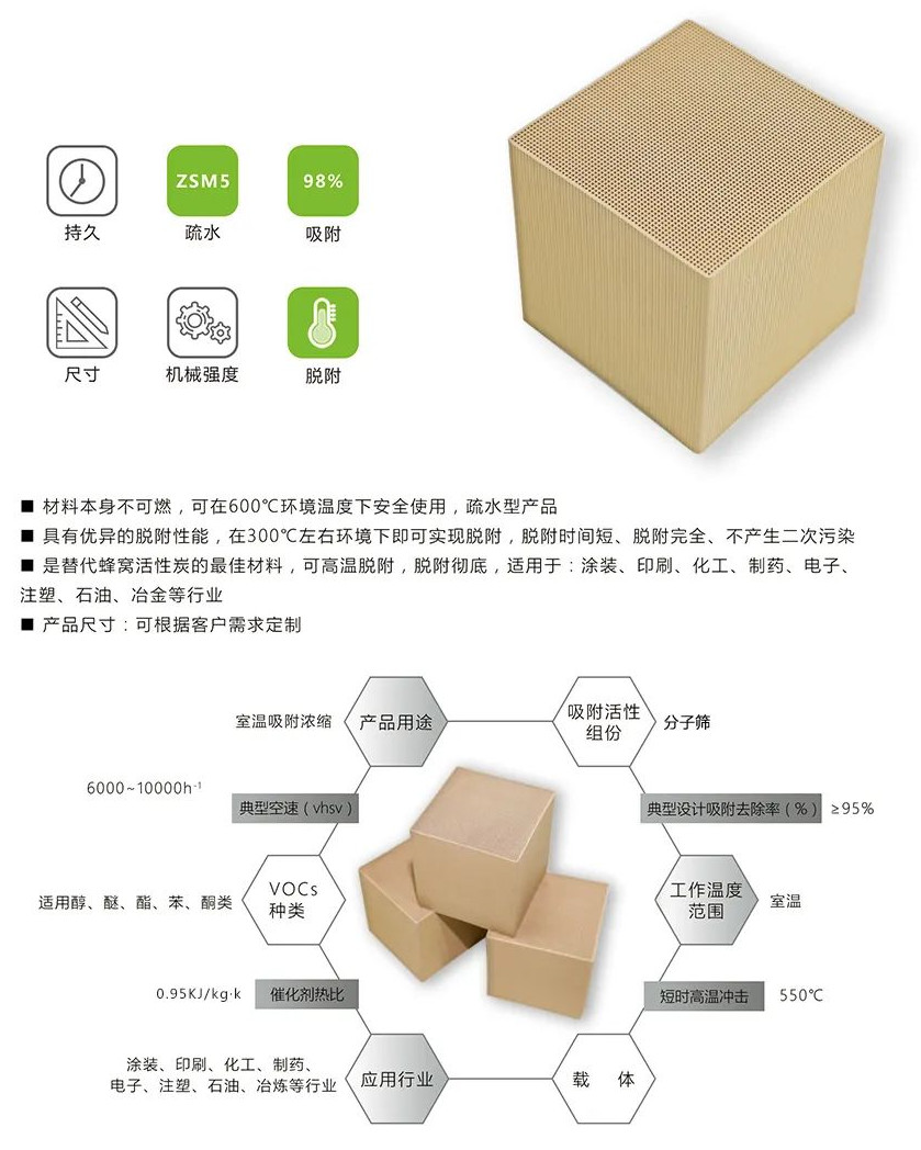1.高吸附容量:蜂窩沸石具有較大的比表面積和孔體積,能夠吸附更多的有害物質(zhì)。