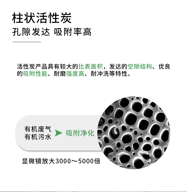 在工業(yè)污水處理中,由于柱狀活性炭易清洗、機(jī)械強(qiáng)度高、吸附容量大,所以一般采用柱狀活性炭??梢杂脕韮艋?。柱狀活性炭以高品質(zhì)煤、椰殼、木屑為原材料,經(jīng)系列生產(chǎn)工藝精加工而成。外觀呈黑色圓柱形微粒,普遍應(yīng)用于氣體處理、污水處理、脫硫脫硝、溶劑回收、制氮機(jī)、空分裝置、噴漆車間等領(lǐng)域。