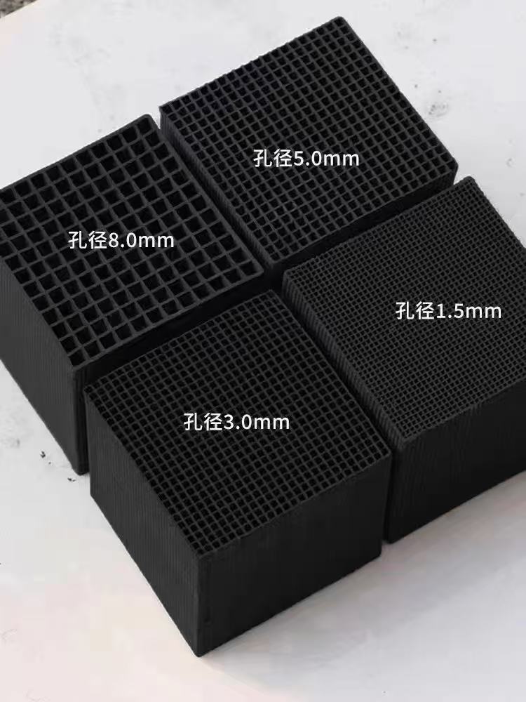不同孔徑適用于不同場景。小孔徑產(chǎn)品(1.5-2毫米)適合處理低濃度、小顆粒污染物,常見于實(shí)驗(yàn)室精密儀器或高端空氣凈化設(shè)備。這類孔徑的蜂窩炭對(duì)甲苯、甲醛等小分子氣體吸附效率可達(dá)85%以上。中孔徑(3毫米)屬于通用型,既能處理氣體又能攔截微小顆粒,工廠廢氣處理裝置多用這種規(guī)格。大孔徑(5毫米)主打高通風(fēng)量,適合含粉塵、油霧的工業(yè)環(huán)境,比如噴涂車間排風(fēng)系統(tǒng),雖然吸附效率降至60%左右,但能避免孔道堵塞